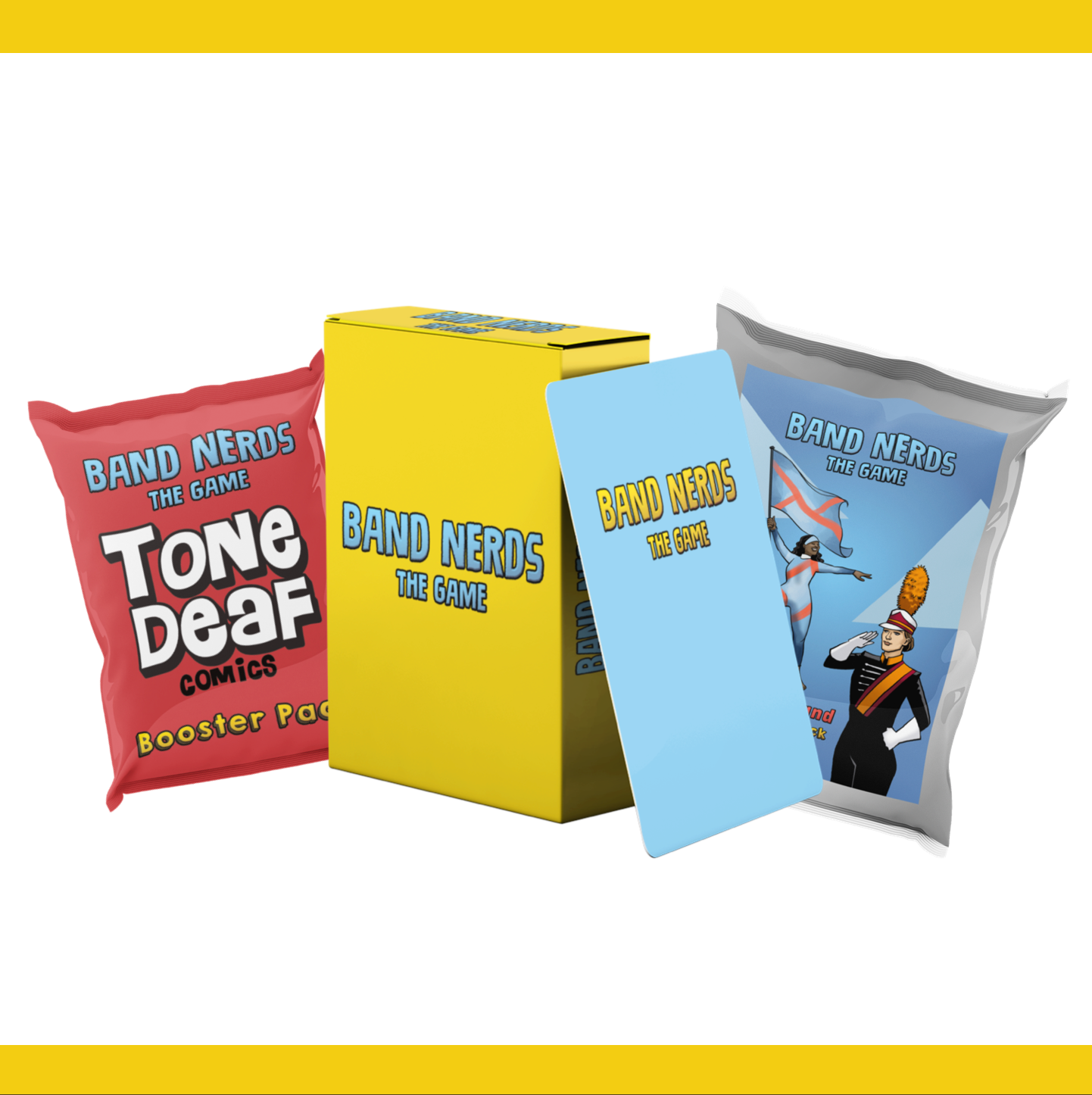 Finally! Tone Deaf Comics and The 13th Chair have teamed up to create the Tone Deaf Booster Pack for Band Nerds: The Game. The pack includes 7 new description/action cards and 10 Band Nerd instrument cards specific drawing by the Tone Deaf Comic artist for Band Nerds: The Game!
